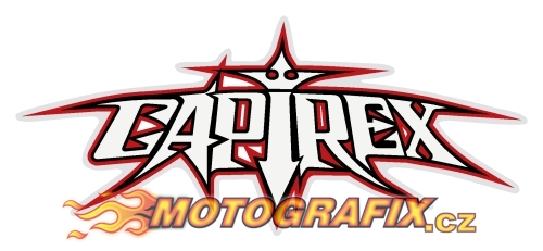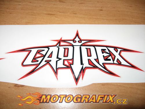 Logotyp Lorise Capirossiho přezdívka ,,Capirex,, , natištěné na průhledné folii. Rozměry: výška 40mm;šířka 100mm.