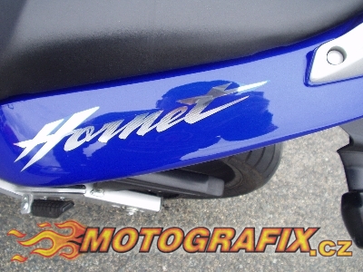 Kompletní sada polepů na motocykl CB 600F Hornet model 2003. Cena je za sadu na celou motorku. Kvalita a odolnost je znásobena dodatečnou laminací, tzn. přelaminováním speciální krycí fólií s UV filtrem. Originální rozměry polepů.