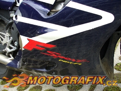 Kompletní sada polepů na motocykl Honda CBR 600 FS model 2002. Cena je za sadu na celou motorku. Samozřejmě si můžete objednat pouze část polepů, kterou potřebujete. Kvalita a odolnost je znásobena dodatečnou laminací, tzn. přelaminováním speciální krycí fólií s UV filtrem. Originální rozměry polepů.