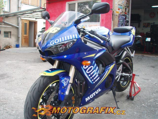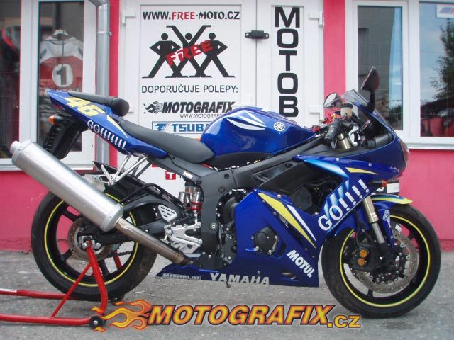 Kompletní sada polepů na motocykl R6 model, GO!!!!!!! Rossi GP 2004. Sadu můžeme upravit na jakýkoliv model motocyklu. Možnost volby za příplatek reflexních polepů. Součástí sady je sada proužků na ráfky GO!!!!!!!. Kvalita a odolnost je znásobena dodatečnou laminací, tzn. přelaminováním speciální krycí fólií s UV filtrem.