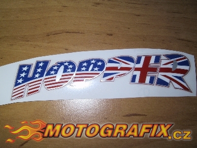 Logotyp Johna Hopkinse přezdívka ,,HOPPER,, , natištěné na průhledné folii.
