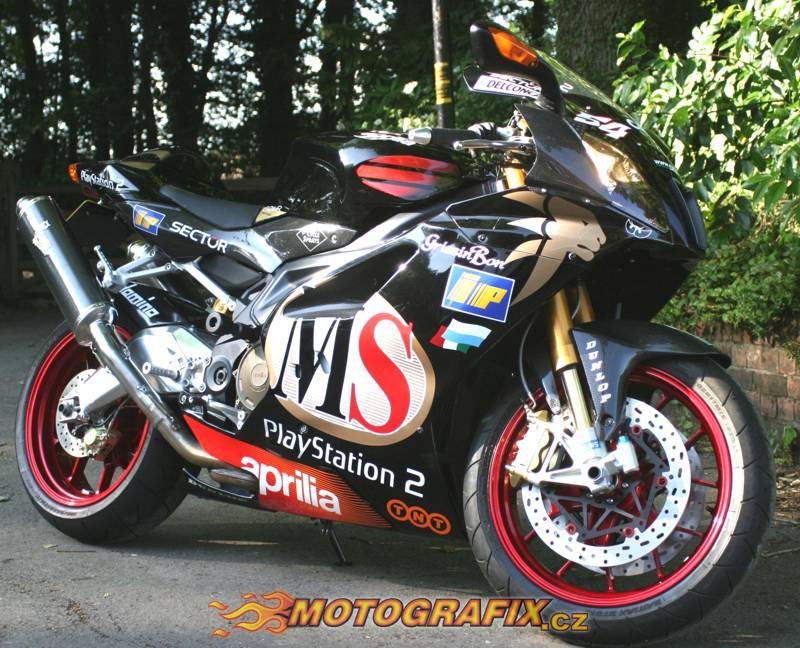 Kompletní sada polepů na motocykl Aprilia RSV. Sadu můžeme upravit na jakýkoliv model motocyklu. Kvalita a odolnost je znásobena dodatečnou laminací, tzn. přelaminováním speciální krycí fólií s UV filtrem.