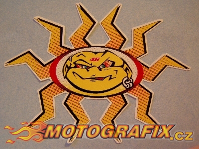 Logotyp Valentina Rossiho slunce. Rozměry: výška 70mm ; šířka 93mm.