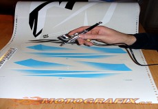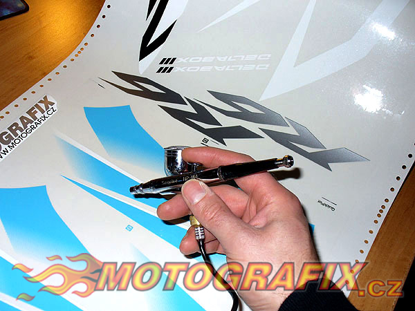 Nápaditost při výrobě motopolepů nás přinutila k vylepšení technologie výroby polepů a k vytvoření technologie pracovně nazvanou ,,Gerbrush,, (Gerber Edge FX+Airbrush) kombinujících tisk určitých odstínů, doplněných dodatečnou aplikací perletě za pomocí technologie airbrush a rozšíření tímto již tak velikou škálu odstínů (zhruba 4000) o další odstíny metalízových barev. Tato technologie výroby polepů je velmi časově náročná a proto ji nepoužíváme standartně při výrobě všech komerčních sad motopolepů v nabídce našeho E-shopu. Technologii používáme pouze v Brně jako jediní v ČR.